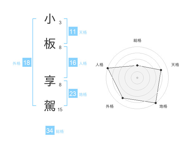 小板 享駕さんの総格は34画の2点!