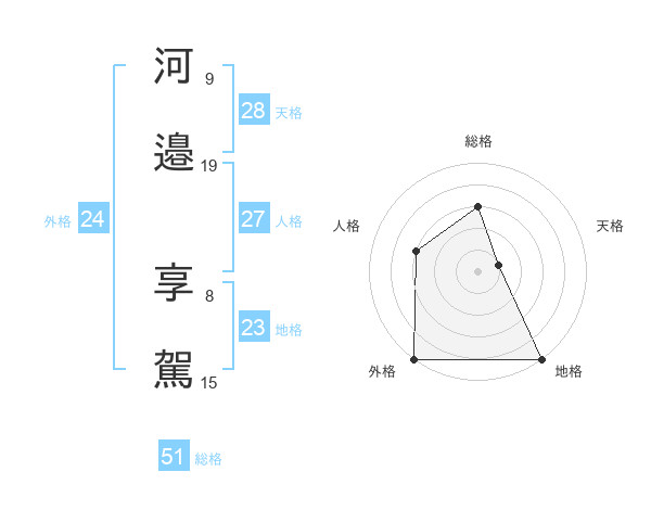 河邉 享駕さんの総格は51画の3点!