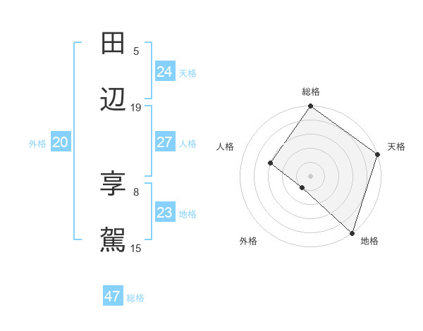 田辺 享駕さんを姓名の画数から五運を鑑定