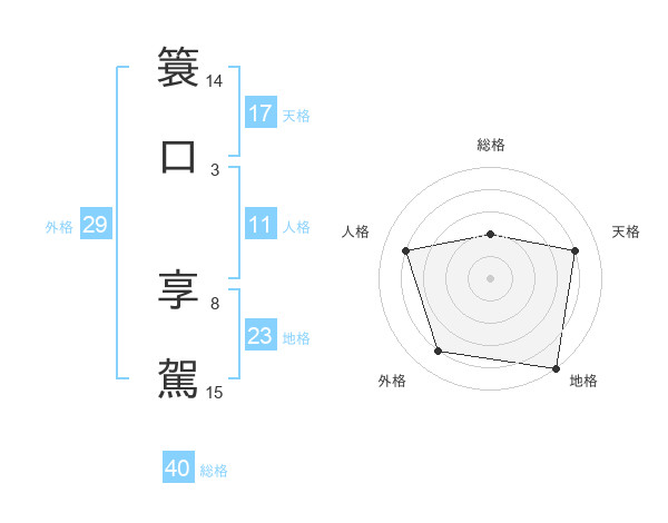簑口 享駕さんの天格は17画の4点!