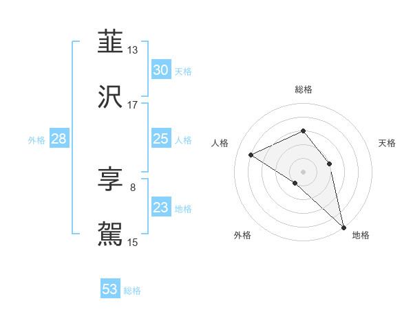 韮沢 享駕さんを姓名の画数から五運を鑑定