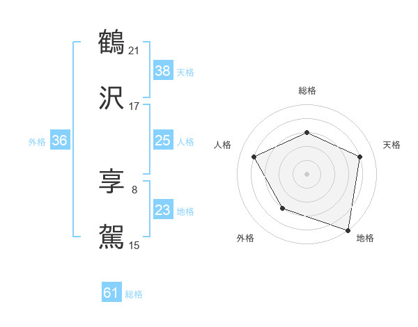 鶴沢 享駕さんの総格は61画の3点!