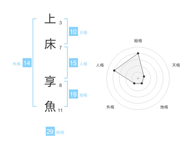 上床 享魚さんの総格は29画の4点!