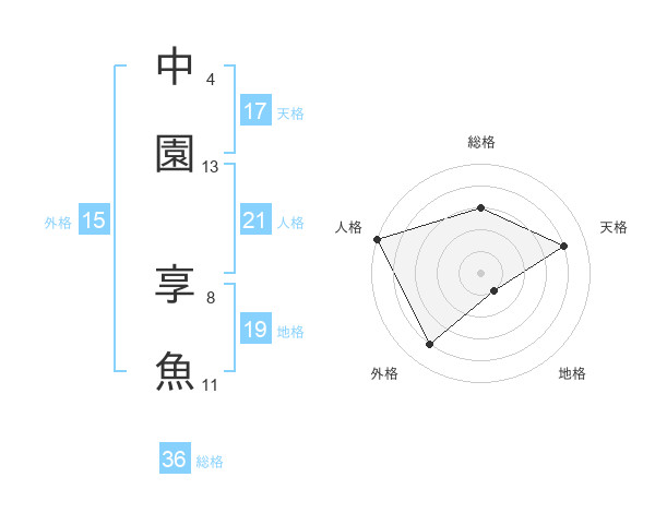 中園 享魚さんの天格は17画の4点!