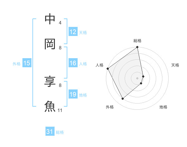 中岡 享魚さんを姓名の画数から五運を鑑定