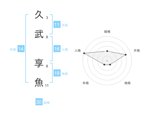 久武 享魚さんの総格は30画の2点!
