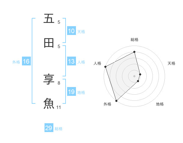 五田 享魚さんの総格は29画の4点!