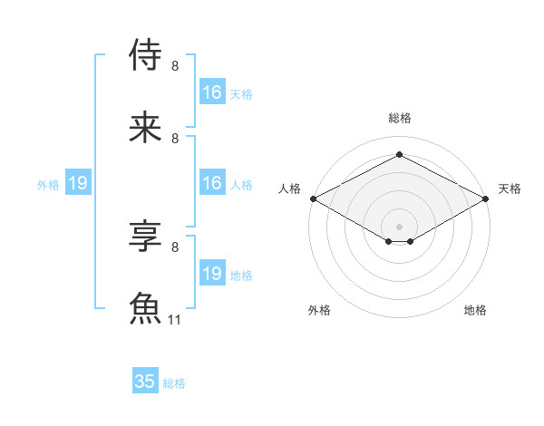 侍来 享魚さんの総格は35画の4点!