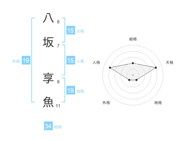 八坂 享魚さんの人格は15画の4点!