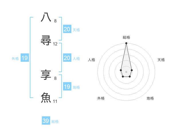 八尋 享魚さんの総格は39画の5点!