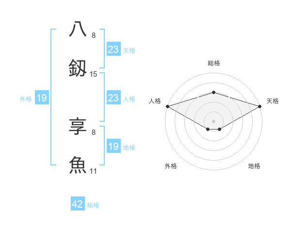 八釼 享魚さんの天格は23画の5点!