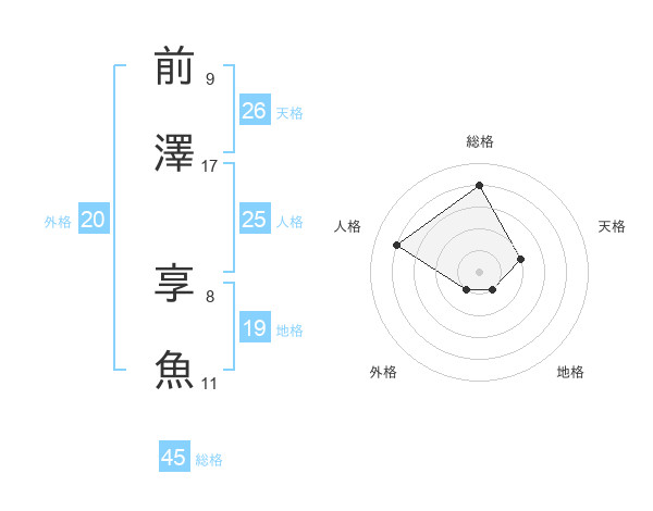 前澤 享魚さんの総格は45画の4点!