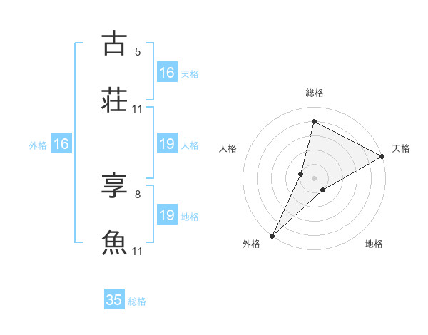 古荘 享魚さんを姓名の画数から五運を鑑定