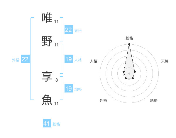 唯野 享魚さんの総格は41画の5点!