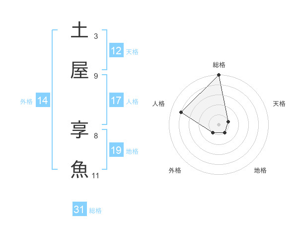 土屋 享魚さんの総格は31画の5点!