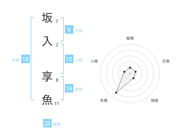 坂入 享魚さんを姓名の画数から五運を鑑定