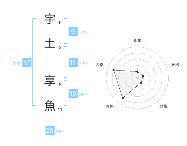 宇土 享魚さんの総格は28画の1点!