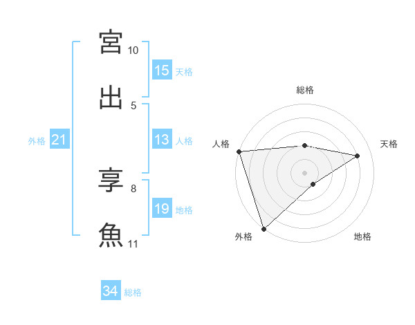 宮出 享魚さんの天格は15画の4点!