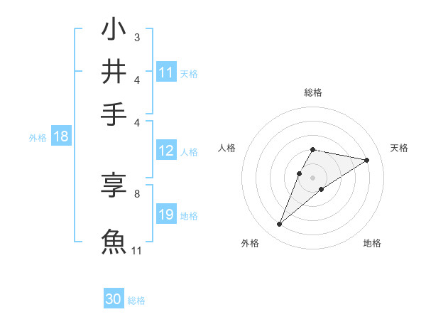小井手 享魚さんを姓名の画数から五運を鑑定