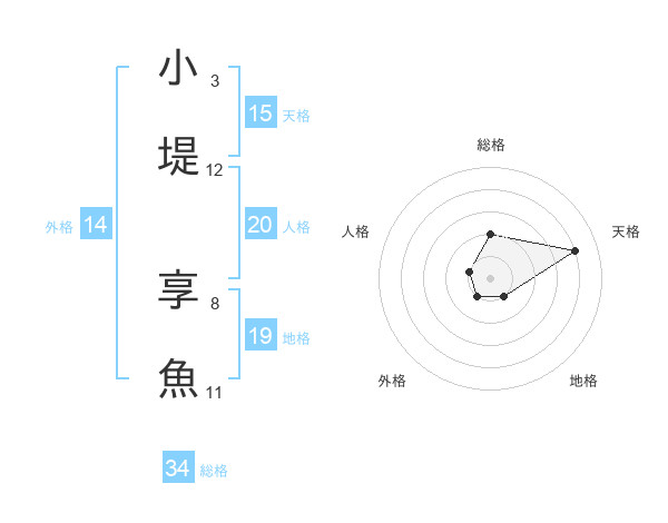 小堤 享魚さんの天格は15画の4点!