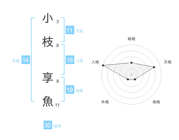 小枝 享魚さんの天格は11画の4点!