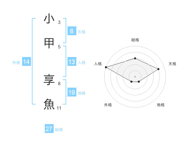 小甲 享魚さんの天格は8画の4点!