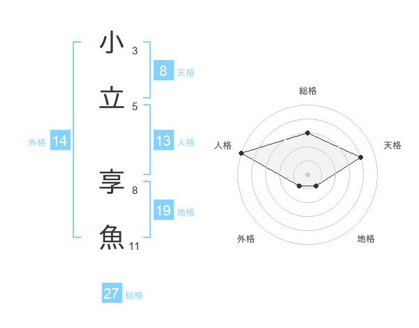 小立 享魚さんの天格は8画の4点!