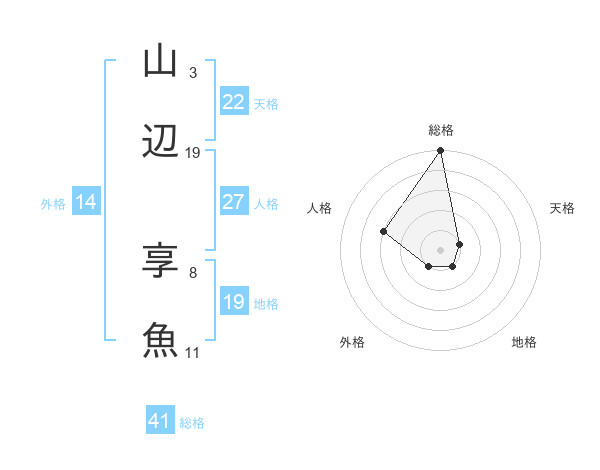 山辺 享魚さんを姓名の画数から五運を鑑定