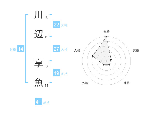 川辺 享魚さんの総格は41画の5点!