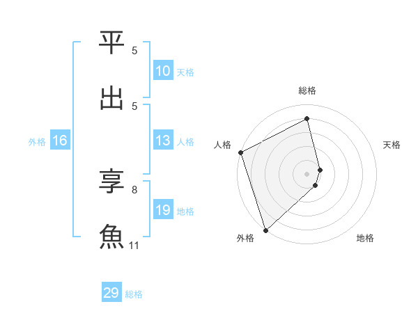 平出 享魚さんの総格は29画の4点!