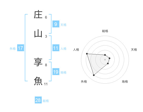 庄山 享魚さんの総格は28画の1点!