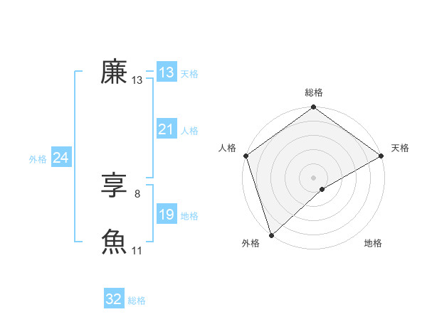 廉 享魚さんの天格は13画の5点!