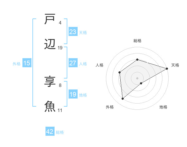 戸辺 享魚さんの総格は42画の3点!