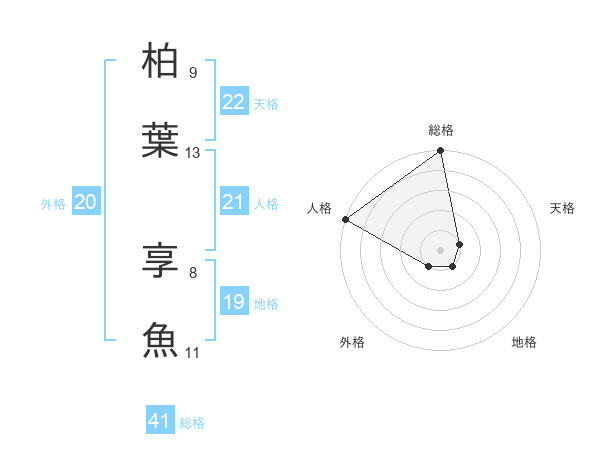 柏葉 享魚さんの総格は41画の5点!