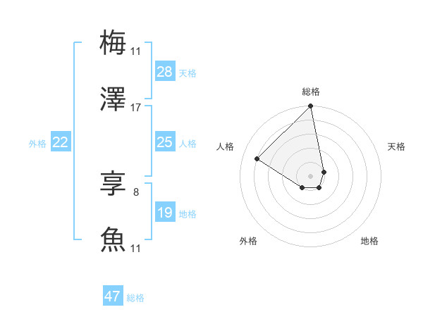 梅澤 享魚さんの総格は47画の5点!
