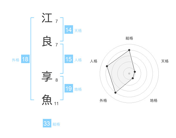 江良 享魚さんの総格は33画の4点!