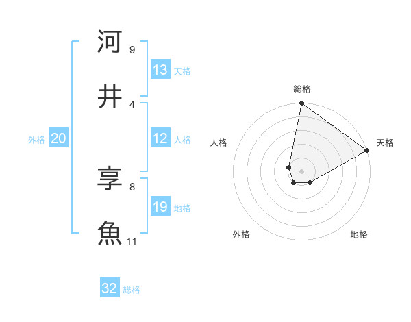 河井 享魚さんの総格は32画の5点!