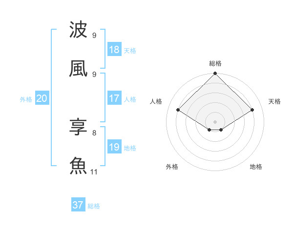 波風 享魚さんの天格は18画の4点!