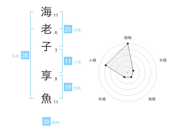 海老子 享魚さんの総格は39画の5点!