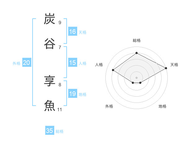 炭谷 享魚さんの総格は35画の4点!