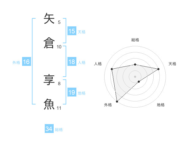 矢倉 享魚さんの外格は16画の5点!