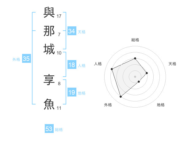 與那城 享魚さんの総格は53画の3点!