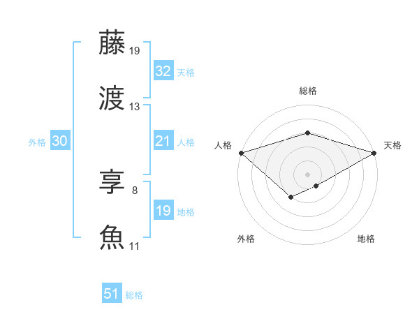 藤渡 享魚さんを姓名の画数から五運を鑑定