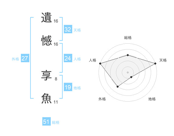 遺憾 享魚さんを姓名の画数から五運を鑑定