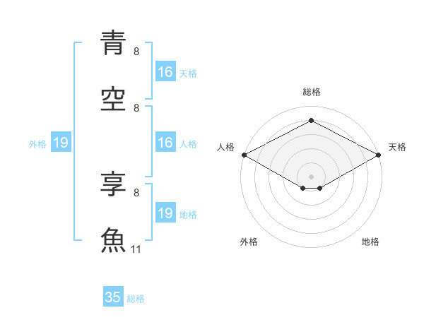青空 享魚さんの天格は16画の5点!
