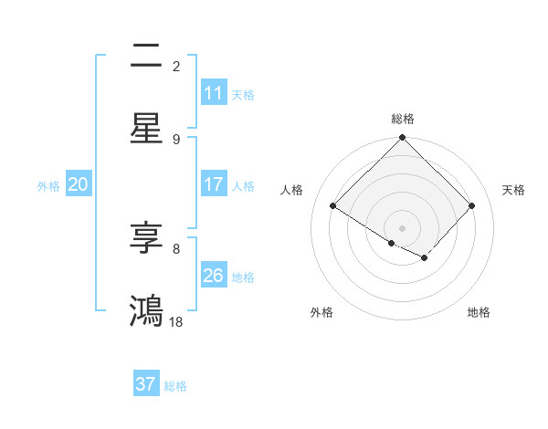 二星 享鴻さんを姓名の画数から五運を鑑定