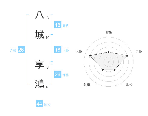 八城 享鴻さんを姓名の画数から五運を鑑定