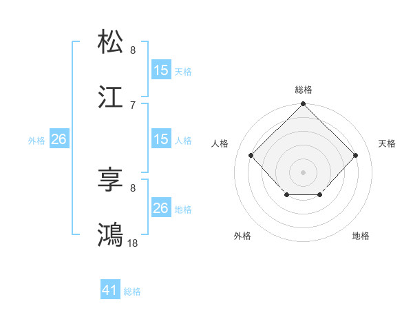 松江 享鴻さんの天格は15画の4点!