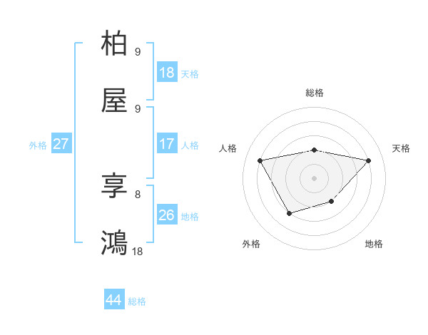 柏屋 享鴻さんの総格は44画の2点!