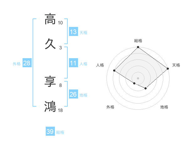 高久 享鴻さんを姓名の画数から五運を鑑定